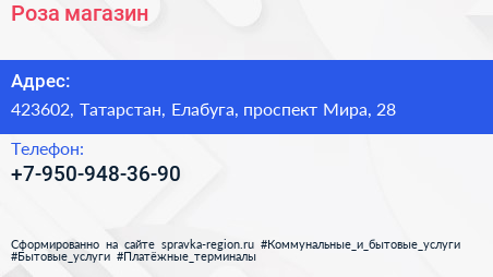 Роза, магазин по адресу 423602, Татарстан, Елабуга, проспект Мира, 28 в дальнейшем Организация, размещена в следующих категориях:
