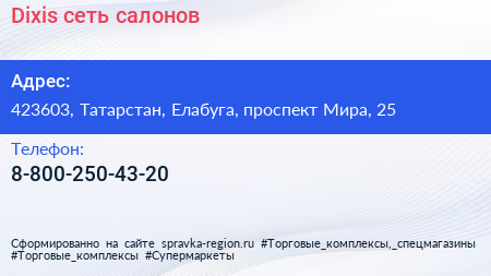 Dixis, сеть салонов по адресу 423603, Татарстан, Елабуга, проспект Мира, 25 в дальнейшем Организация, размещена в следующих категориях: