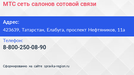 МТС, сеть салонов сотовой связи по адресу 423639, Татарстан, Елабуга, проспект Нефтяников, 11а в дальнейшем Организация, размещена в следующих категориях: