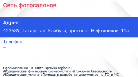 Сеть фотосалонов по адресу 423639, Татарстан, Елабуга, проспект Нефтяников, 11а в дальнейшем Организация, размещена в следующих категориях: