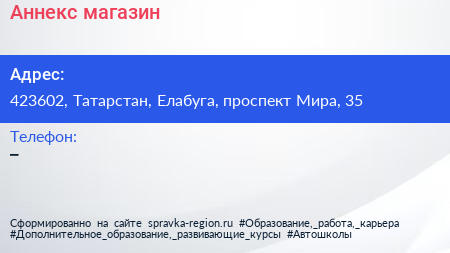 Аннекс, магазин по адресу 423602, Татарстан, Елабуга, проспект Мира, 35 в дальнейшем Организация, размещена в следующих категориях: