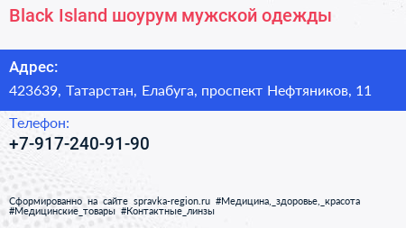 Black Island, шоурум мужской одежды по адресу 423639, Татарстан, Елабуга, проспект Нефтяников, 11 в дальнейшем Организация, размещена в следующих категориях: