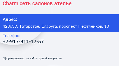 Charm, сеть салонов-ателье по адресу 423639, Татарстан, Елабуга, проспект Нефтяников, 10 в дальнейшем Организация, размещена в следующих категориях: