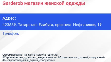 Garderob, магазин женской одежды по адресу 423639, Татарстан, Елабуга, проспект Нефтяников, 19 в дальнейшем Организация, размещена в следующих категориях: