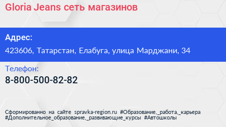 Gloria Jeans, сеть магазинов по адресу 423606, Татарстан, Елабуга, улица Марджани, 34 в дальнейшем Организация, размещена в следующих категориях: