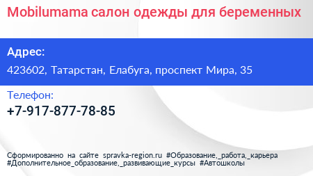 Mobilumama, салон одежды для беременных по адресу 423602, Татарстан, Елабуга, проспект Мира, 35 в дальнейшем Организация, размещена в следующих категориях: