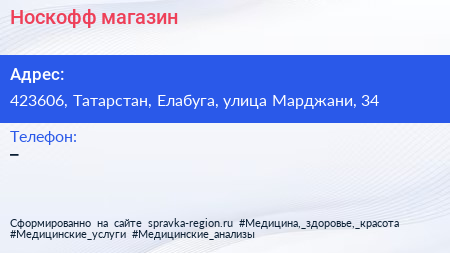 Носкофф, магазин по адресу 423606, Татарстан, Елабуга, улица Марджани, 34 в дальнейшем Организация, размещена в следующих категориях:
