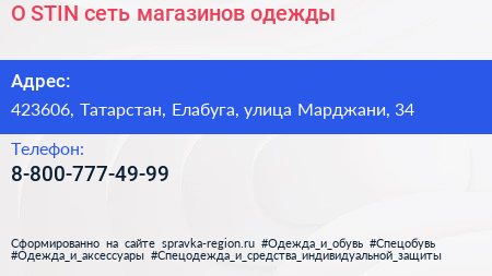 O`STIN, сеть магазинов одежды по адресу 423606, Татарстан, Елабуга, улица Марджани, 34 в дальнейшем Организация, размещена в следующих категориях: