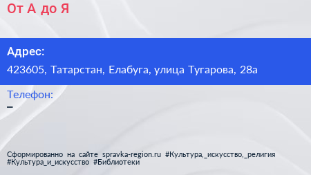 От А до Я по адресу 423605, Татарстан, Елабуга, улица Тугарова, 28а в дальнейшем Организация, размещена в следующих категориях:
