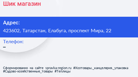 Шик, магазин по адресу 423602, Татарстан, Елабуга, проспект Мира, 22 в дальнейшем Организация, размещена в следующих категориях: