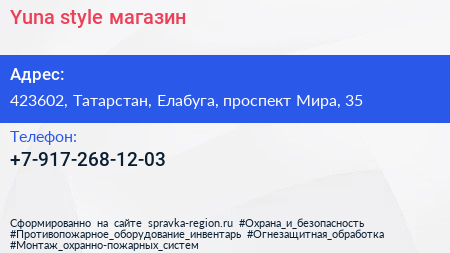 Yuna style, магазин по адресу 423602, Татарстан, Елабуга, проспект Мира, 35 в дальнейшем Организация, размещена в следующих категориях: