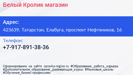 Белый Кролик, магазин по адресу 423639, Татарстан, Елабуга, проспект Нефтяников, 16 в дальнейшем Организация, размещена в следующих категориях: