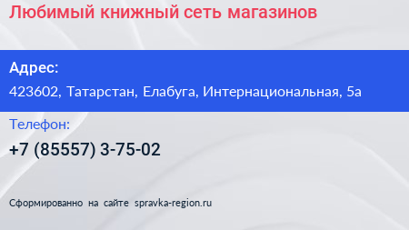 Любимый книжный, сеть магазинов по адресу 423602, Татарстан, Елабуга, Интернациональная, 5а в дальнейшем Организация, размещена в следующих категориях: