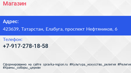 Магазин по адресу 423639, Татарстан, Елабуга, проспект Нефтяников, 6 в дальнейшем Организация, размещена в следующих категориях: