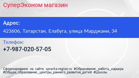 СуперЭконом, магазин по адресу 423606, Татарстан, Елабуга, улица Марджани, 34 в дальнейшем Организация, размещена в следующих категориях:
