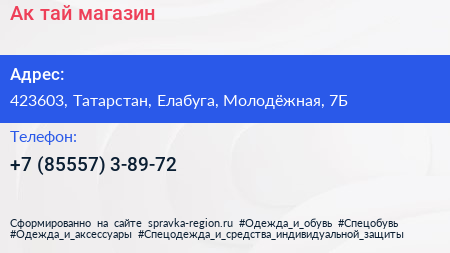 Ак-тай, магазин по адресу 423603, Татарстан, Елабуга, Молодёжная, 7Б в дальнейшем Организация, размещена в следующих категориях: