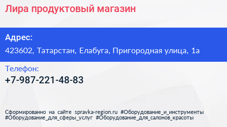 Лира, продуктовый магазин по адресу 423602, Татарстан, Елабуга, Пригородная улица, 1а в дальнейшем Организация, размещена в следующих категориях: