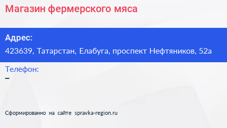 Магазин фермерского мяса по адресу 423639, Татарстан, Елабуга, проспект Нефтяников, 52а в дальнейшем Организация, размещена в следующих категориях:
