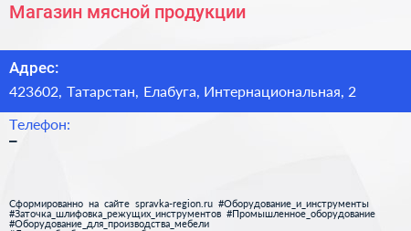 Магазин мясной продукции по адресу 423602, Татарстан, Елабуга, Интернациональная, 2 в дальнейшем Организация, размещена в следующих категориях: