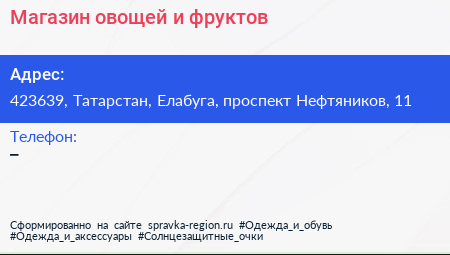 Магазин овощей и фруктов по адресу 423639, Татарстан, Елабуга, проспект Нефтяников, 11 в дальнейшем Организация, размещена в следующих категориях: