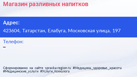 Магазин разливных напитков по адресу 423604, Татарстан, Елабуга, Московская улица, 197 в дальнейшем Организация, размещена в следующих категориях: