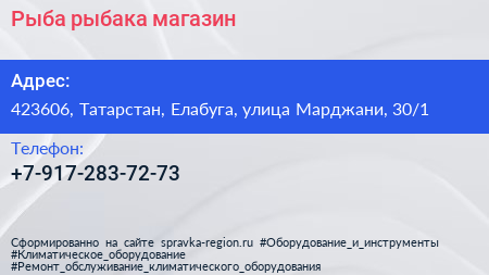 Рыба рыбака, магазин по адресу 423606, Татарстан, Елабуга, улица Марджани, 30/1 в дальнейшем Организация, размещена в следующих категориях: