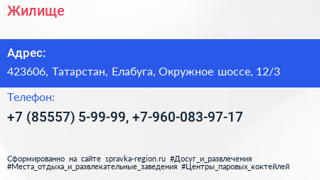 Жилище по адресу 423606, Татарстан, Елабуга, Окружное шоссе, 12/3 в дальнейшем Организация, размещена в следующих категориях:
