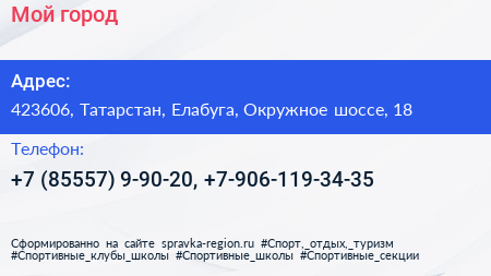 Мой город по адресу 423606, Татарстан, Елабуга, Окружное шоссе, 18 в дальнейшем Организация, размещена в следующих категориях: