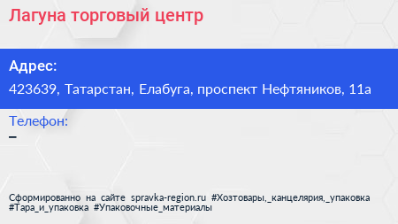 Лагуна, торговый центр по адресу 423639, Татарстан, Елабуга, проспект Нефтяников, 11а в дальнейшем Организация, размещена в следующих категориях:
