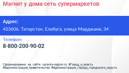 Магнит у дома, сеть супермаркетов по адресу 423606, Татарстан, Елабуга, улица Марджани, 34 в дальнейшем Организация, размещена в следующих категориях: