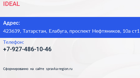 IDEAL по адресу 423639, Татарстан, Елабуга, проспект Нефтяников, 10а ст1 в дальнейшем Организация, размещена в следующих категориях: