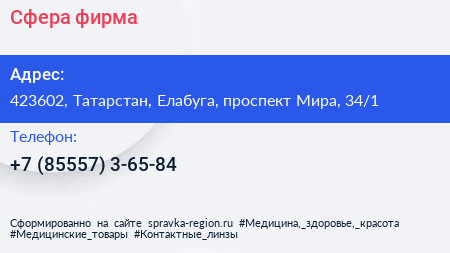 Сфера, фирма по адресу 423602, Татарстан, Елабуга, проспект Мира, 34/1 в дальнейшем Организация, размещена в следующих категориях: