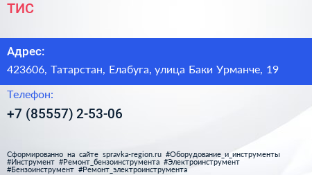 ТИС по адресу 423606, Татарстан, Елабуга, улица Баки Урманче, 19 в дальнейшем Организация, размещена в следующих категориях: