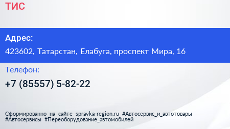 ТИС по адресу 423602, Татарстан, Елабуга, проспект Мира, 16 в дальнейшем Организация, размещена в следующих категориях: