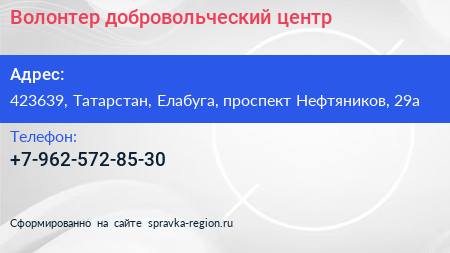 Волонтер, добровольческий центр по адресу 423639, Татарстан, Елабуга, проспект Нефтяников, 29а в дальнейшем Организация, размещена в следующих категориях: