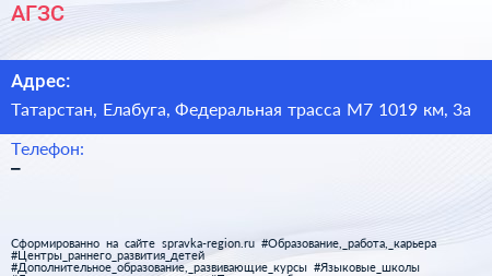 АГЗС по адресу Татарстан, Елабуга, Федеральная трасса М7 1019 км, 3а в дальнейшем Организация, размещена в следующих категориях: