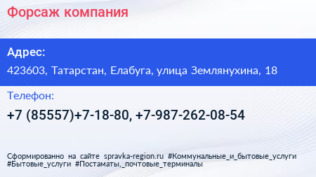 Форсаж, компания по адресу 423603, Татарстан, Елабуга, улица Землянухина, 18 в дальнейшем Организация, размещена в следующих категориях:
