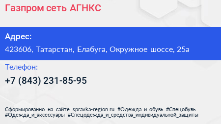 Газпром, сеть АГНКС по адресу 423606, Татарстан, Елабуга, Окружное шоссе, 25а в дальнейшем Организация, размещена в следующих категориях: