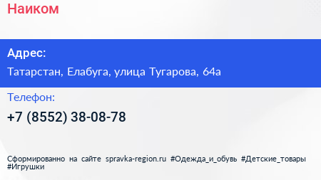 Наиком по адресу Татарстан, Елабуга, улица Тугарова, 64а в дальнейшем Организация, размещена в следующих категориях: