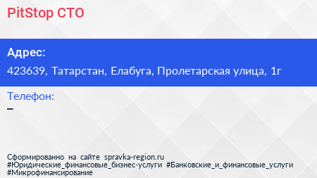 PitStop, СТО по адресу 423639, Татарстан, Елабуга, Пролетарская улица, 1г в дальнейшем Организация, размещена в следующих категориях: