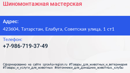 Шиномонтажная мастерская по адресу 423604, Татарстан, Елабуга, Советская улица, 1 ст1 в дальнейшем Организация, размещена в следующих категориях:
