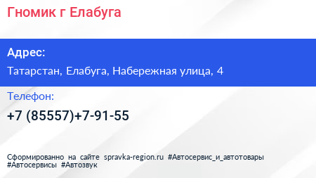 Гномик, г. Елабуга по адресу Татарстан, Елабуга, Набережная улица, 4 в дальнейшем Организация, размещена в следующих категориях: