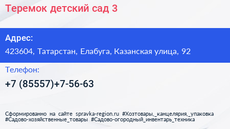 Теремок, детский сад №3 по адресу 423604, Татарстан, Елабуга, Казанская улица, 92 в дальнейшем Организация, размещена в следующих категориях: