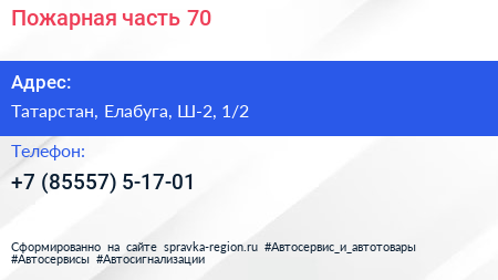 Пожарная часть №70 по адресу Татарстан, Елабуга, Ш-2, 1/2 в дальнейшем Организация, размещена в следующих категориях:
