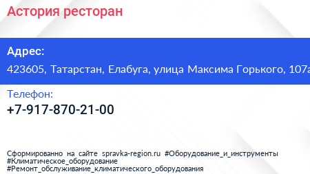 Астория, ресторан по адресу 423605, Татарстан, Елабуга, улица Максима Горького, 107а в дальнейшем Организация, размещена в следующих категориях:
