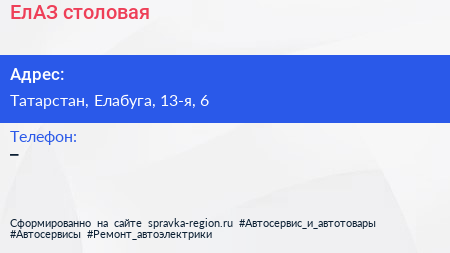 ЕлАЗ, столовая по адресу Татарстан, Елабуга, 13-я, 6 в дальнейшем Организация, размещена в следующих категориях: