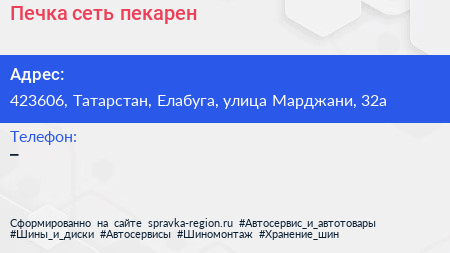 Печка, сеть пекарен по адресу 423606, Татарстан, Елабуга, улица Марджани, 32а в дальнейшем Организация, размещена в следующих категориях:
