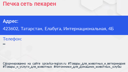 Печка, сеть пекарен по адресу 423602, Татарстан, Елабуга, Интернациональная, 4Б в дальнейшем Организация, размещена в следующих категориях:
