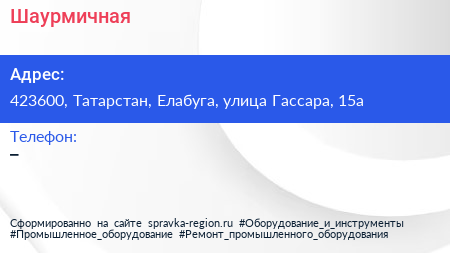 Шаурмичная по адресу 423600, Татарстан, Елабуга, улица Гассара, 15а в дальнейшем Организация, размещена в следующих категориях: