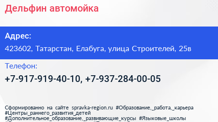 Дельфин, автомойка по адресу 423602, Татарстан, Елабуга, улица Строителей, 25в в дальнейшем Организация, размещена в следующих категориях: